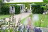 Terrasse côté cuisine, salon, salle à manger. Hamac, chaises-longues côté prairie (jouissance d'un espace privatif avec vue sur l'arrière du château et les moutons...).